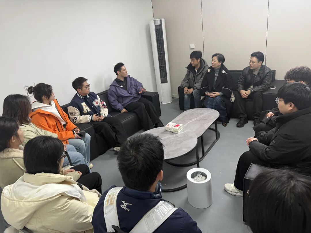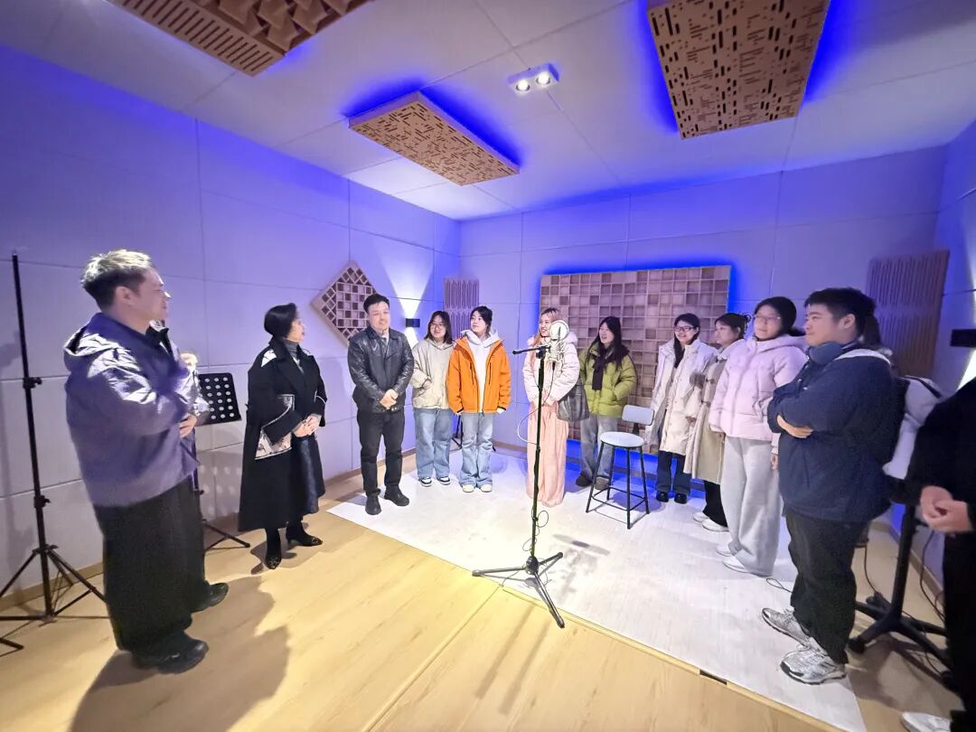 随后,在黄仁烁带领下,师生一行实地参观了录音棚、艺人直播间等专业空间,深入了解音乐制作、内容拍摄和项目运营的实际流程,进一步增强了对行业一线工作场景的直观认识。
