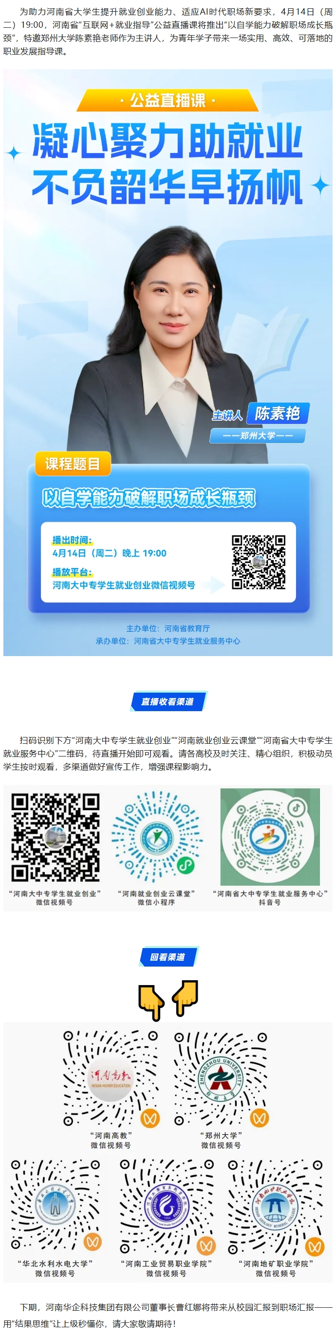 周二晚19:00,河南省“互联网+就业指导”公益直播课:以自学能力破解职场成长瓶颈