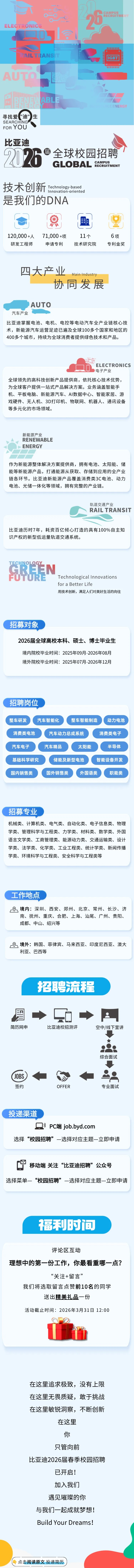 比亚迪2026届春季校园招聘