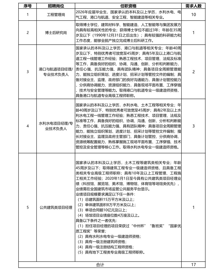 因企业发展和人才队伍建设需要,现面向社会和2026年应届毕业生进行公开招聘,具体事宜如下: