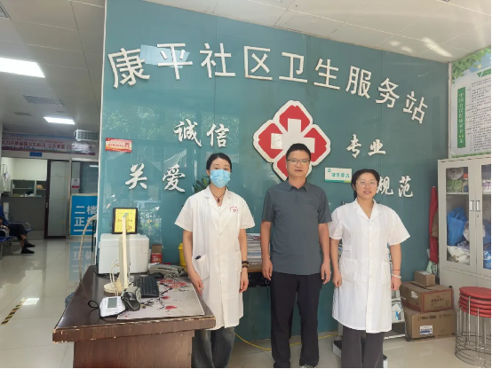 在康平社区卫生服务站,田恒运受到站内医护人员吴秀丽老师、侯丽老师的热情接待。她们带领了田恒运参观了服务站的诊疗区、取药区、治疗室等区域,详细介绍了各区域的功能布局、医疗设备配置以及日常诊疗、公共卫生服务等工作的开展情况。