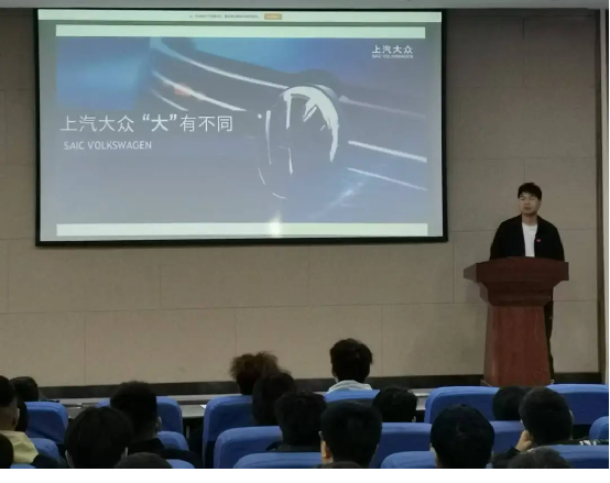 10月28日下午,上汽大众汽车有限公司在黄河科技学院工学部智能楼鲁班讲堂成功举办2026届校园招聘宣讲会。宣讲会面向汽车、机械、电子、电气等相关专业毕业生,吸引了百余名学生到场参与,现场气氛活跃,互动频繁。