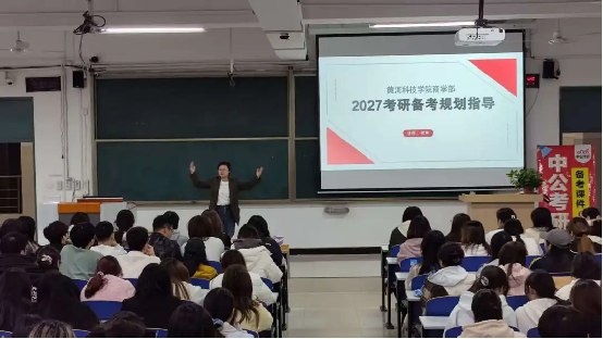 为助力考研学子明确考研目标、科学规划备考路径,11月2日,商学部经济与管理科教中心特邀中公考研讲师徐娣在408、409教室开展2027考研备考规划指导活动。23级普本经济学、国际经济与贸易、工商管理和物流管理所有学生参加本次活动。