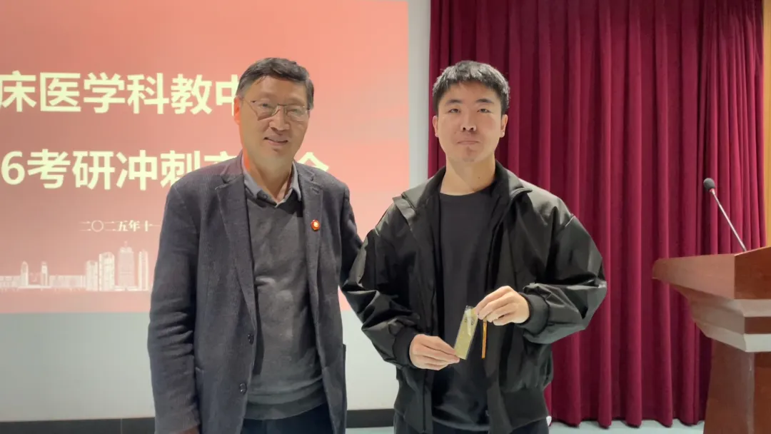 会上,王黎结合自身经验,为学生提出三点核心备考建议,一是科学统筹时间,合理分配复习时长;二是保持平稳心态,专注备考;三是牢记规律作息,合理饮食睡眠。李喜强从备考策略和职业路径规划等多维度为学生提供指导。他通过分析高校的排名与录取特点,帮助学生结合自身实力做出明智选择。他带领全体学生重温医学生誓词,强调考研不仅是个人前途,更是为未来患者而战的职业使命。在职业路径规划方面,李喜强建议同学们灵活选择学硕或专硕,鼓励同学们通过拓宽视野,了解科研岗位等多元职业方向。