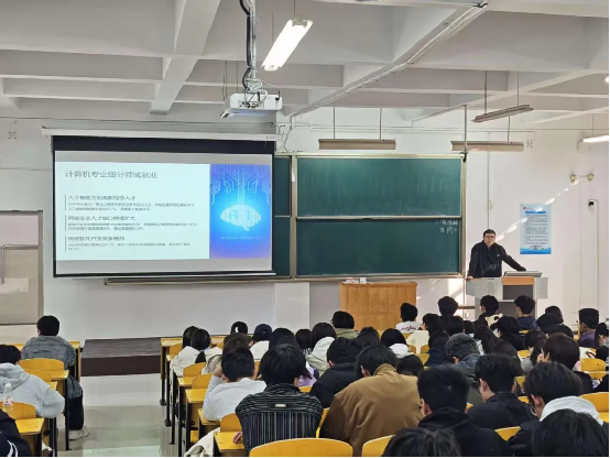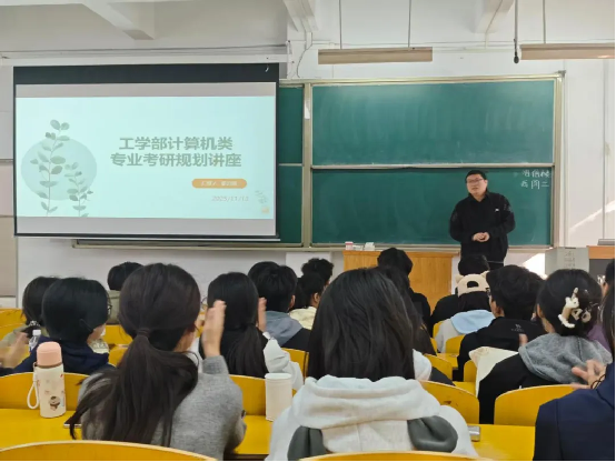 2025年11月13日,黄河科技学院工学部秦记峰老师在智信楼西阶三举行考研规划专题讲座。计算机科学与技术、物联网工程专业大一全体学生参加。