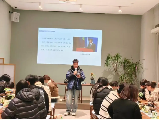 11月18日下午,商学部外语科教中心30名学子在党政学工办副主任张倩、辅导员张薇薇的带领下,赴农业路天地粤海酒店彩赋茶文化科普基地,开展“讲好河南故事”外语演讲大赛配套采风活动,同步推进访企拓岗工作,深化校企文化传播与人才培养合作。